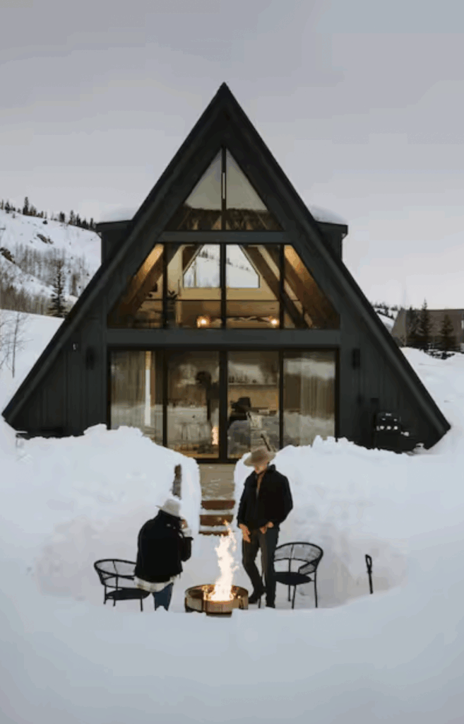 When Caitlin and Matt first inquired with me, they had their hearts set on a classic Colorado a-frame cabin elopement. Picking the a-frame cabin airbnb was a fun journey for them – as they imagined themselves getting married in each space. Ultimately, they settled on this adorable cabin in Jefferson, CO called the Triangle Cabin. It’s the perfect place for an intimate elopement with no guests. This cabin is just one bedroom. It offers a retro kitchen space, spiral staircase to the lofted bedroom and the cutest red-orange couch. We love a pop of color. The front of the house invites you in with a contrasting red door and aspens hugging the walkway. The views off the back patio show endless miles of the continental mountain range.